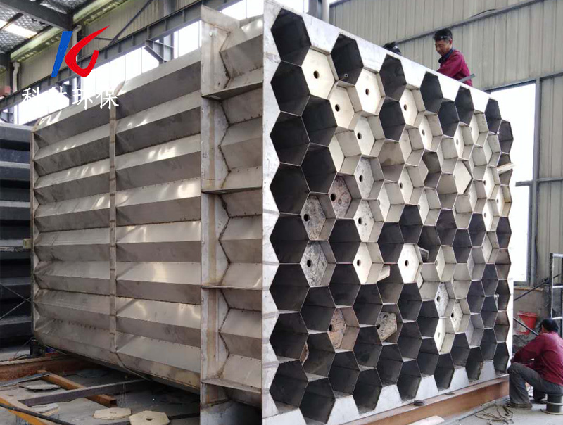 結構緊湊。蜂窩型結構使每個(gè)極管的內外表面都成為沉淀表面,極管之間不存在死區。因此,對處理同樣規模的煙氣,它的體積小,占地 面積小。